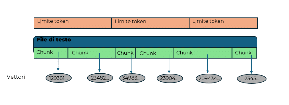 Per rispettare il limite dei token, i testi lunghi vengono suddivisi in chunk: piccoli pezzi di testo, ognuno dei quali può essere elaborato dal modello. Questo processo è fondamentale per permettere al sistema di “digerire” anche documenti molto estesi, ma può comportare la perdita di parte del contesto se le informazioni importanti sono distribuite su più chunk.