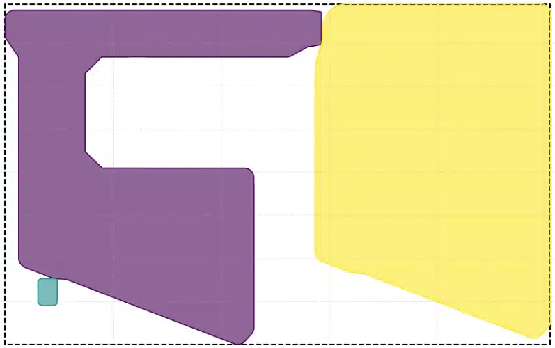 2.Riconoscimento (dal 3D al 2D): Il sistema non vede solo una sagoma piatta. Analizza il file CAD originale (formato STEP) e ne estrae l’impronta a terra (il perimetro esterno), tenendo traccia anche delle delle altezze. È come se facessimo una radiografia dell’oggetto per capire quanto spazio occupa realmente.